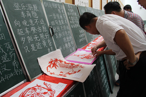 经过老师们反复的斟酌,评选结果得到最终确定。硬笔字优秀作品获得者有:14级小学教育香晓欣、卢静娴、徐诗敏、刘佩欣、赖严、丁倩君、黄诗茵、杨蕙芸、莫锦怡,13级小学教育肖玉玲、周思敏、黎宁、黎相颖、王嘉韵、张颖佩、12级小学教育黎松英、莫凯欣、陈瑞冰、梁晓怡、刘淑贞、曾乐平;毛笔字优秀作品获得者有:吴青桥、张珮怡、袁海鹏、黎相颖、蓝俊涛;粉笔字优秀作品获得者有:14小学教育数学班的香晓欣、黄诗茵、莫锦怡、李彩容、钟永媚,14小学教育文科班的赖严、刘佩欣,14汉师班的袁雪婷,13小学教育语文班的黎相颖、陈俐君、郑寿珠、范珊珊,13小学教育数学班的周思敏、肖玉玲,12小学教育语文班的李焕平、陈敏、谢杰怡和12小学教育数学班的梁晓怡、黄丽珊、吴洁英;剪纸优秀作品有:14小学教育数学班肖彦的《年年有鱼》、杨艳萍的《羊添百福》、李彩容的《春暖花开》,14小学教育语文班杨蕙芸的《和》,13小学教育数学班黎雅婷的《喜鹊报春》和《喜兔临门》、吴思仪的《凤》、陈晓琳的《百岁贺2015》、吴秋婷的《蝶恋花》。