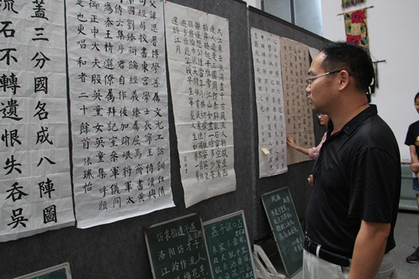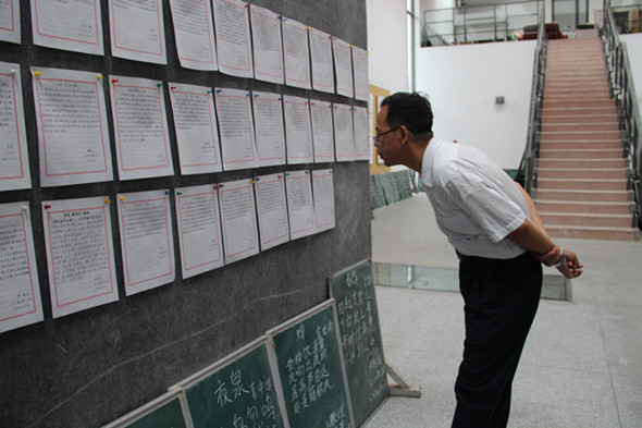 为进一步提高员工的道德修养和展现师范生的专业技能,公司举行了一年一度的“三笔字比赛”,本次比赛征集到许多优秀作品。5月20日下午,师范学院特别邀请了李玉悌老师、吴东涛老师、杨继龙老师和梁兴源老师对本次比赛征集的硬笔字、毛笔字、粉笔字作品以及剪纸作品进行评选。评选过程中,评审老师对同学们的作品一一进行认真的观赏并对优秀作品给予了嘉奖。
