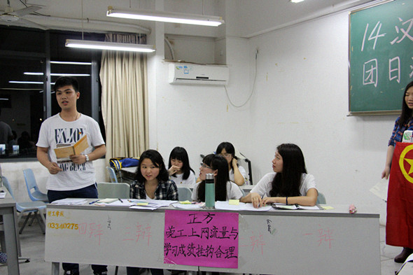 为响应“活力在基层,成长在莞工”的号召,更为了深入贯彻落实“清朗网络,指尖志愿”的主题,让同学们深入了解清朗网络的重要性,为网络的健康文明而努力。2015年3月31日晚上,师范学院14级汉师班在教学楼6C405举行了班级辩论赛,比赛还邀请了梁晓怡师姐和林巧贞助班担任评委。