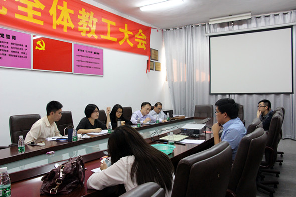 2015年4月17日下午,师范学院红旗团组织评比在师范学院A303顺利举行。辅导员袁志军老师担任了本次会议的主持人。师范学院团总支书记、干部都准备就绪,接受红旗团总支评审团的考察。