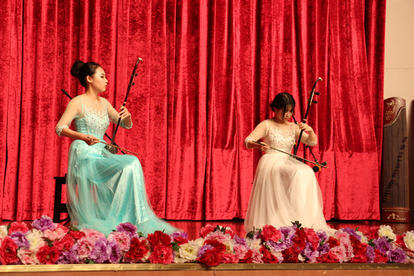 钢琴四手联弹《耶鲁摇滚》首先拉开了晚会的序幕,激情的旋律点燃了全场观众的热情,接着古筝独奏的《茉莉芬芳》、弦乐八重奏《军队进行曲》和《匈牙利舞曲》等演奏节目让全场掌声不断,其中更有流行曲《无字碑》和《红高粱》的演奏,全场的欢呼声更是连绵不绝。各种乐器的搭配演奏,组成了十四个精妙绝伦的节目,给现场观众带来了一场视觉和听觉的饕餮盛宴。