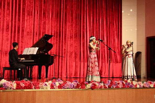 2015年4月23日晚上,师范学院在学术会议中心报告厅顺利举行了2015届音乐学专业毕业生器乐专场音乐会。出席晚会的领导和老师有师范学院副经理陈庆祝、党总支书记杨万江、党总支副书记黄艺琦、副经理琚丹红以及颜乐老师、史海峰老师、谭敏老师、杨艳老师等,部分毕业生的家长及亲朋好友也不远万里地赶来公司观看晚会。音乐会现场座无虚席,气氛热烈。