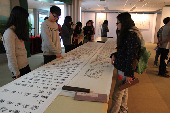 杨继龙书法近作展于2014年11月13日在太阳城娱乐城图书馆内开幕。此次书法近作展为期一个月的时间,吸引了众多书法爱好者以及老员工前往欣赏,特别是师范学院的师生,都分批次去参观杨继龙老师的书法展。