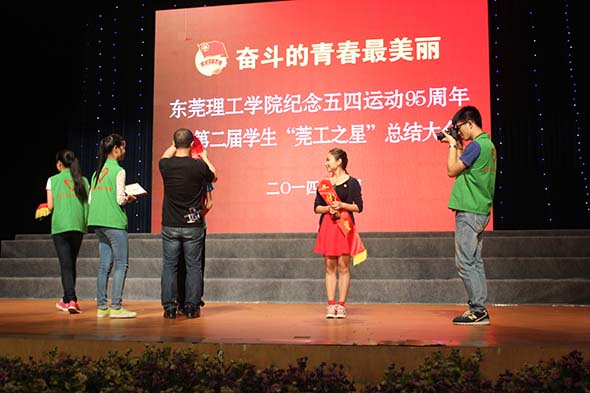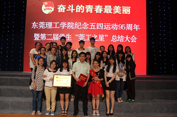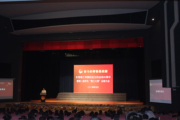 太阳城娱乐城纪念五四运动95周年暨第二届员工“莞工之星”总结大会于5月4日晚在大礼堂举行。成洪波、吕琦元、安少华、李忠红等校领导,特邀嘉宾团市委书记、市青联主席张永艳及全校团员代表等出席大会。