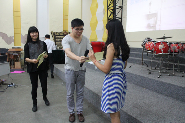 这日傍晚,天气因雨季而变得阴冷潮湿,但这似乎也抑制不住选手们的热情。伴随着活跃的现场氛围,大赛进入第一个环节:自选曲目。在这个环节,选手们上台演唱自己的拿手曲目。让观众们听到自己的好声音,打动评委和观众的心。在各位选手演唱完毕后,便由评委和观众投票他们心目中的好声音。在工作人员统计票数的同时,主持人邀请现场观众上台演唱。师范学院无愧“魅力无限,才艺无边”之称,员工中能唱之辈比比皆是。献唱的两位观众丝毫不逊色于各位选手,演唱时现场高潮迭起,更有人为她们送上鲜花。观众献唱在一片掌声中完结。这是工作人员统计好票数,宣布晋级名单,晋级选手进入大赛下一个环节:抢麦环节。在这个环节会播放歌曲的一小部分,选手们须迅速抢麦接出下面四句并说出歌曲名称才算抢麦成功。比赛最终结果将结合晋级选手们第一第二环节的总成绩评选出一二三等奖以及人气奖、优胜奖和风采奖。在比赛最后一个环节:音乐传我心时,袁志军辅导员空降现场,与同学们进行良好互动,也为获奖选手们颁奖。袁老师幽默的点评使全场气氛到达最高点,“我是麦霸”唱K大赛在一片掌声和笑声中结束。