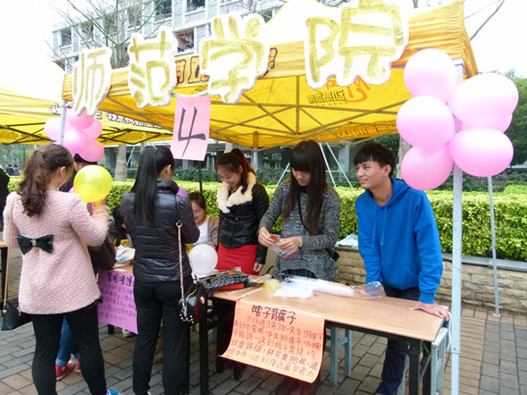 师范学院也为女生节活动做了精心准备,设置了如“蒙眼睛喂馒头”、“瞎子背瘸子”等趣味游戏,参与活动者还可以获得精美的小礼品。有许多同学踊跃参与,同学们在游戏中得到快乐,现场充满了欢声笑语。