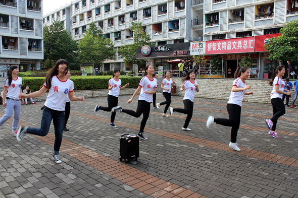 2014年4月3日下午,13群众文艺全体人员在下沉广场开展团日活动 “秋情伴舞,用青春的朝气点燃激情的火焰”.开展团日活动能够让同学们增进感情,增强班级凝聚力。