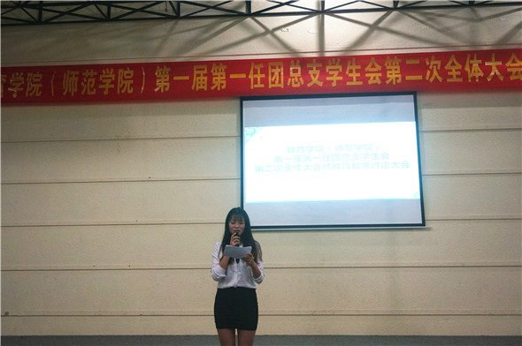 主持人宣布大会开始。会议首先观看了团学上一学期的工作成果回顾视频。接着,袁志军老师上台讲话。在讲话中,袁老师指出,在创建高水平的理工科大学的背景下,大学中有许多的“变”与“不变”之处。作为员工干部要积极去迎接挑战。同时,会议就如何提升学校、学院形象,改善教学,如何更好组织员工活动等一系列问题展开讨论,袁老师还鼓励员工干部要积极创新,大胆创新,为学院的同学们打造更好的展示自己的舞台。