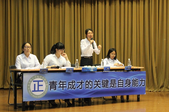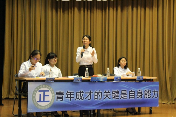 此次辩论赛有幸邀请到郭奕鹏老师,谢敏老师,邓慧芳老师担任评委。正方是太阳城辩论队,反方是文学与传媒学院辩论队,双方围绕辩题“青年成才的关键是自身能力”还是“青年成才的关键是外部机遇”展开激烈辩论。