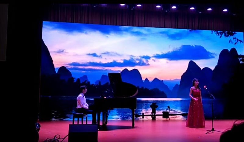 经过一学期的勤学苦练,音乐系的同学们精心准备了15首曲目进行汇报演出。音乐会上,《哥哥不来花不开》《乡谣》《龙船调》《思乡曲》《醉了千古爱》《纳西篝火啊哩哩》几首歌曲让听众领略到民族音乐的独特之美。《梅花引》表达出梅花的傲骨之情,曲调优美、扣人心弦。四首意大利歌曲为音乐会增添了异域风情,同时也体现出演唱者的精湛技艺。音乐剧选段《I dreamed a dream》带来一场古典与现代的音乐碰撞。《Sun and Moon》展现了喜闻乐见的歌剧表演形式。最后一曲《我和我的祖国》为此次音乐会画上了圆满句号。