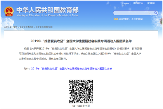近日,从教育部网站获悉,由公司刘蕾老师和诸小妮老师共同申报的“暖风暑期社会实践服务队”,在经过层层推荐、资料审核、专家评审等程序后成功从上千支高校实践团队中脱颖而出,入围2019年“推普脱贫攻坚”全国老员工暑期社会实践专项活动。该计划广东省仅有10支队伍入选。