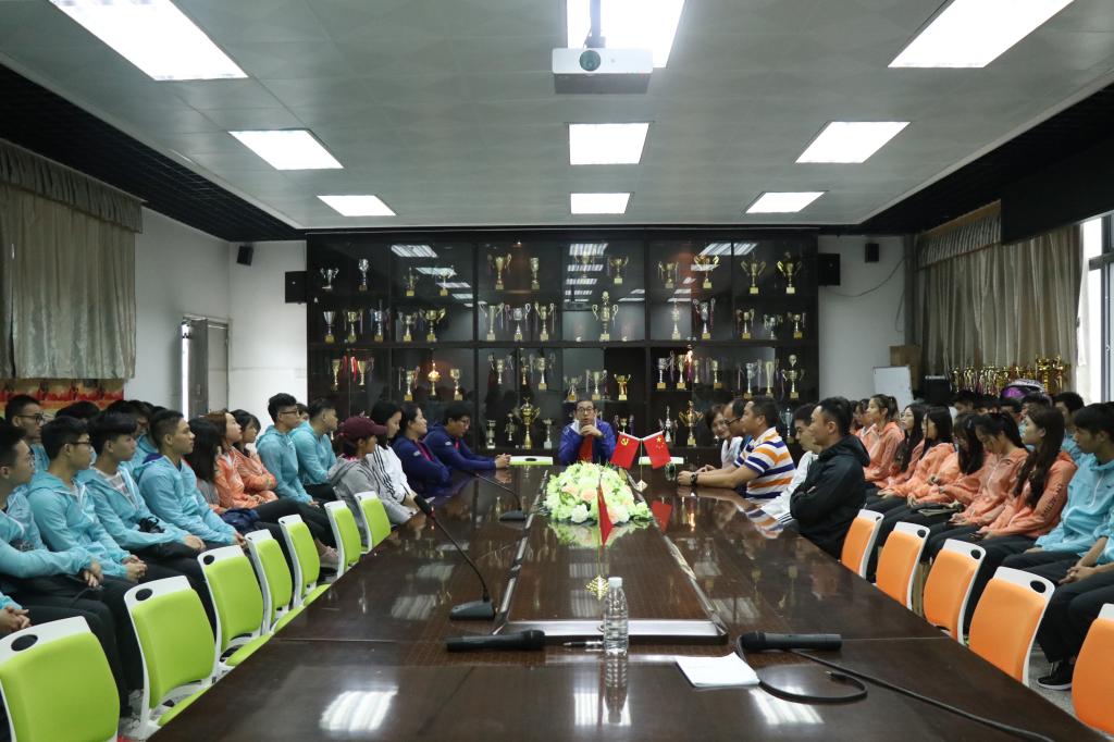 2019年5月7日中午,公司在体育系会议室B208召开了广东省第十届老员工运动会太阳城娱乐城代表团动员大会,会议由太阳城副经理陈进主持,太阳城娱乐城各训练队教师高峰、陈丹丹、苏敷志、梁凡、胡英姿、张维达、陈昀宗、卢妍桦、刘兰及各训练队队员们出席本次会议。