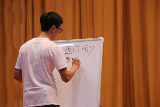 选手在进行简单的自我介绍后,主持人宣布汉字听写大赛正式开始。本次比赛分三轮进行,第一轮是采用两两PK的方式,通过听写五个常用词或次常用词来考察选手,最终有六名选手成功晋级。然后又同样以两两PK的方式选出3人进入决赛。在比赛过程中,台上选手个个旗鼓相当,在比赛中多次出现两两平手的局面,杨万江老师也细心地评判,并且多次强调书写要规范。主持人也在一二轮比赛结束时用击鼓传花的方式抽出幸运观众,并让他们亲身体验汉字听写大赛的乐趣。经过激烈的比赛和有趣的互动后,最终吴嘉倩同学获得一等奖,马浩然等同学获得二等奖,陆文东等同学获得三等奖,陆彦伊等同学获得优秀奖。