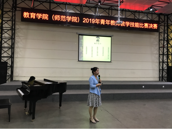 在决赛中,三系的12位教师依次进行了教学技能展示,他们如同往常教学时一样,准备充分、精神饱满,在讲台上展示智慧,辛苦耕耘,播种希望。其中理论教学的唐胜英老师教学语言清晰,思路敏捷,对于体育理论的讲解重难点突出,员工表示明了易懂;向静老师授课循序渐进,由浅入深,课堂气氛和谐;仲雷老师讲解了《诗歌美学》课程“一般性阅读与细读的区别”,结合员工的实际情况把握教学重难点,讲解耐心,分析细致;丁雪老师讲解了钢琴演奏,她教态自然,思路敏捷,PPT制作精美,理论和实践相结合表现出其在钢琴演奏教学方面的优势和特色,课堂充满魅力,十分吸引员工;杨艳老师带来的是阮的演奏教学,她言语清晰,技艺精湛,根据员工的接受程度进行耐心指导;谭敏老师带来了古筝《寒鸦戏水》的片段教学,她讲解清晰,对员工的错误纠正到位,同时示范熟练,优美的古筝示范弹奏弘扬了传统文化,使在场师生们陶冶于古典音乐的魅力之中;谢伟红老师进行了外国文学课程《简爱》的片段教学,讲解声情并茂,课堂氛围活跃,以深入浅出的语言和精准的图文分析了文学作品的主旨思想,让员工印象深刻;周凯丽老师进行了《野草》的舞蹈教学,在场同学舒展身心,在对于肢体动作的探索中提升了技能技巧,加深了对于舞蹈艺术的理解;孙吴莹老师进行了抬举哑铃“俯身飞鸟”的动作讲解,以讲解配合现场示范与指导,让员工一目了然的领会动作重难点;卢妍桦老师进行了网球挥拍击球的动作讲解,教学过程流畅且循序渐进;刘琪老师进行了蛙泳腿部动作的练习讲解,虽然身怀有孕,但仍身体力行现场坐下示范、强调动作要点,这种崇高的敬业精神充分体现了“不忘初心、牢记使命”的主旨,值得大家学习;李楠老师的健美操课堂趣味十足,在动感的音乐和活泼的氛围中带动员工的运动热情,对同学们在日常的健美操训练中常犯的错误动作进行了纠错和指导。赛后,各位评委对参赛选手的上课情况进行了细致点评,并由秘书根据实施方案统计分数,将统计结果上交给教师教学技能竞赛评委会,评委会根据理论和技能课的特点综合讨论评议,评选出了最终的名词与奖项。