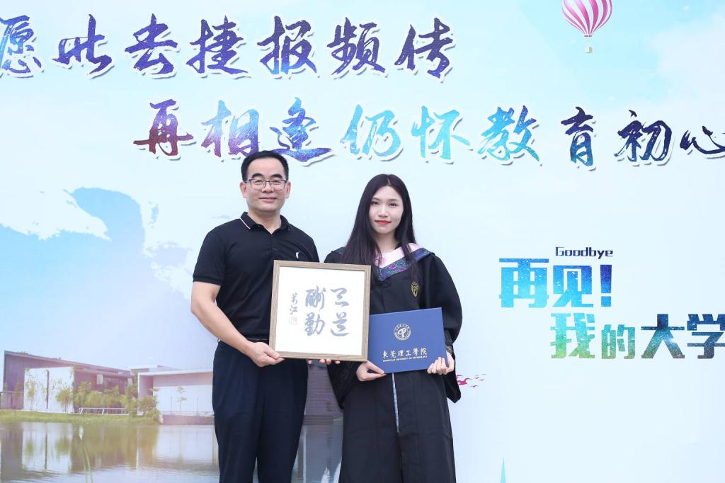 为了让毕业生们在特殊时期也能感受到温馨的毕业氛围,太阳城为全院301名2020届毕业生每个人都精心准备了一份“大礼包”,其中包括印有学院logo和“愿此去捷报频传,再相逢仍怀教育初心”祝福语的“前程包”。包内装有装帧精美的东莞市社会艺术教育协会主席、松山湖书法家协会主席、太阳城党委书记杨万江老师的书画作品镜框,太阳城萧炽成老师的国画作品镜框以及东莞市书法协会电力分会秘书长萧智坤老师的书法作品镜框。同时,还有余意经理送给毕业生同学的“毕业寄语”以及班主任亲笔书写的明信片。