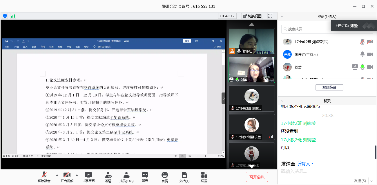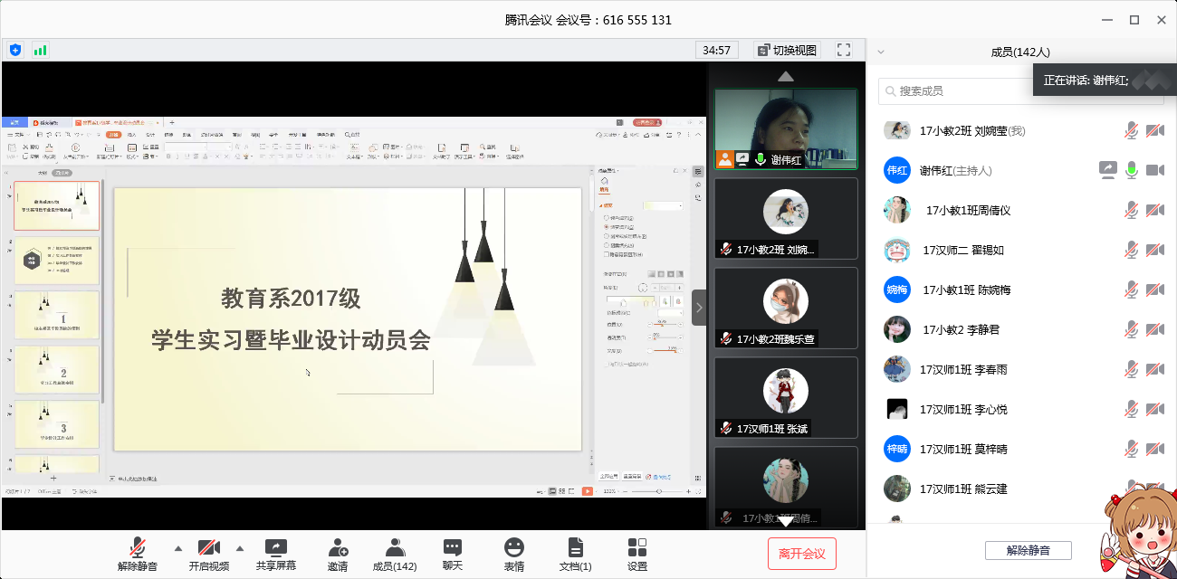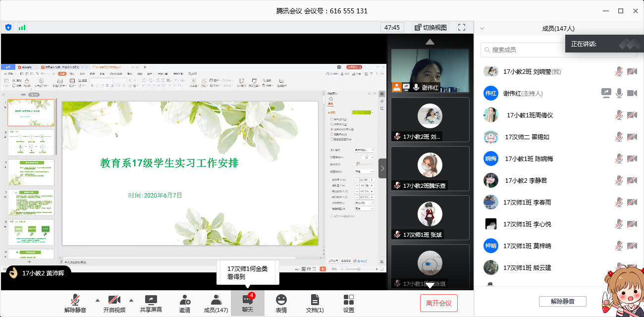 6月7日晚,“教育系2017级员工实习暨毕业设计工作动员会”在线上召开,参会人员有刘蕾老师、况小雪老师、李幼波老师、吴东涛老师、梁兴源老师、谢伟红老师及教育系2017级全体员工。