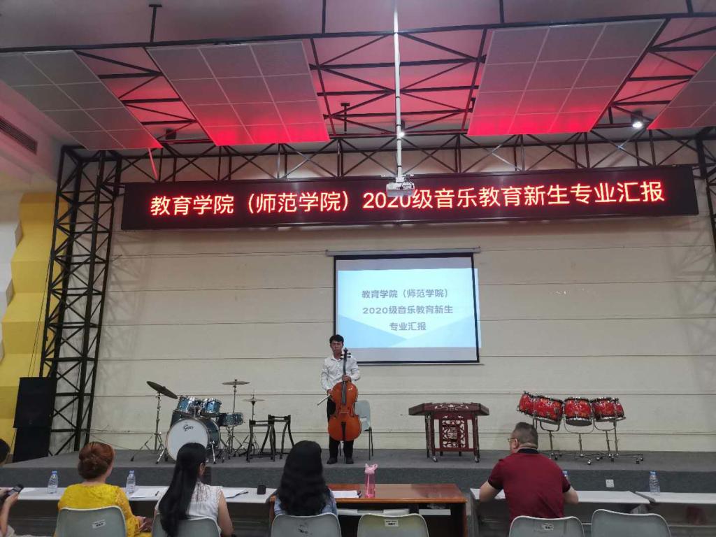 2020年10月15日,太阳城音乐系在艺术楼演奏厅举办了2020级音乐教育新生专业汇报会。新生们分别在学院演奏厅、舞蹈房、员工活动中心小剧场进行了本次汇报会。出席本次汇报会的领导和老师有余意经理、音乐系系主任姚佩婵及音乐系的全体老师们。