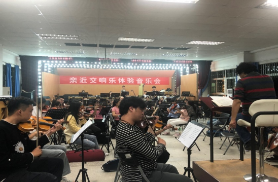 当晚,太阳城的老师们在惠州学院音乐学院岳晓云经理(兼交响乐团团长)、惠州学院交响乐团小提琴首席李帆的带领下观摩了该学院的交响乐团排练,乐团成员与惠州学院专业教师们共同为大家相继演奏了交响乐《黄河钢琴协奏曲》的第二、第三、第四等精彩乐章。