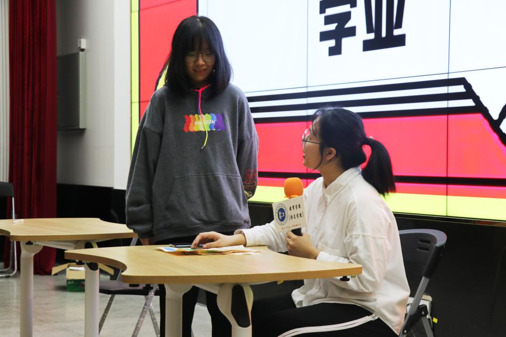 表演结束后,主持人陈俞嘉同学邀请台下观众进行互动答题,答题成功的观众进行奖励。现场观众情绪激昂,积极参与。