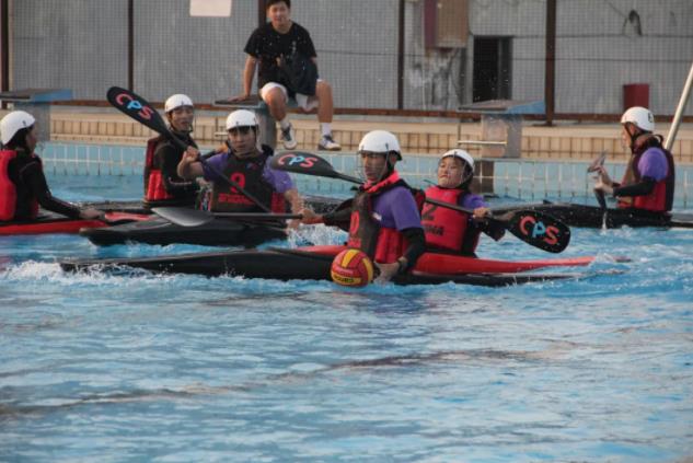 卢教官在进行自我介绍之后,首先向同学们讲述目前我国水上运动行业发展现状与就业前景以及水上运动人才的培养体系。同学们看完海豹教练示范后全都兴奋不已,教练们马上指导同学们穿好救生衣,并拿桨下水。前划、后划、扫桨、急停......同学们认真练习着每一个技术。活动的最后,教练们在活动现场进行了一场精彩的皮艇球表演赛,同学们在泳池边与教练们一起感受进球的喜悦。