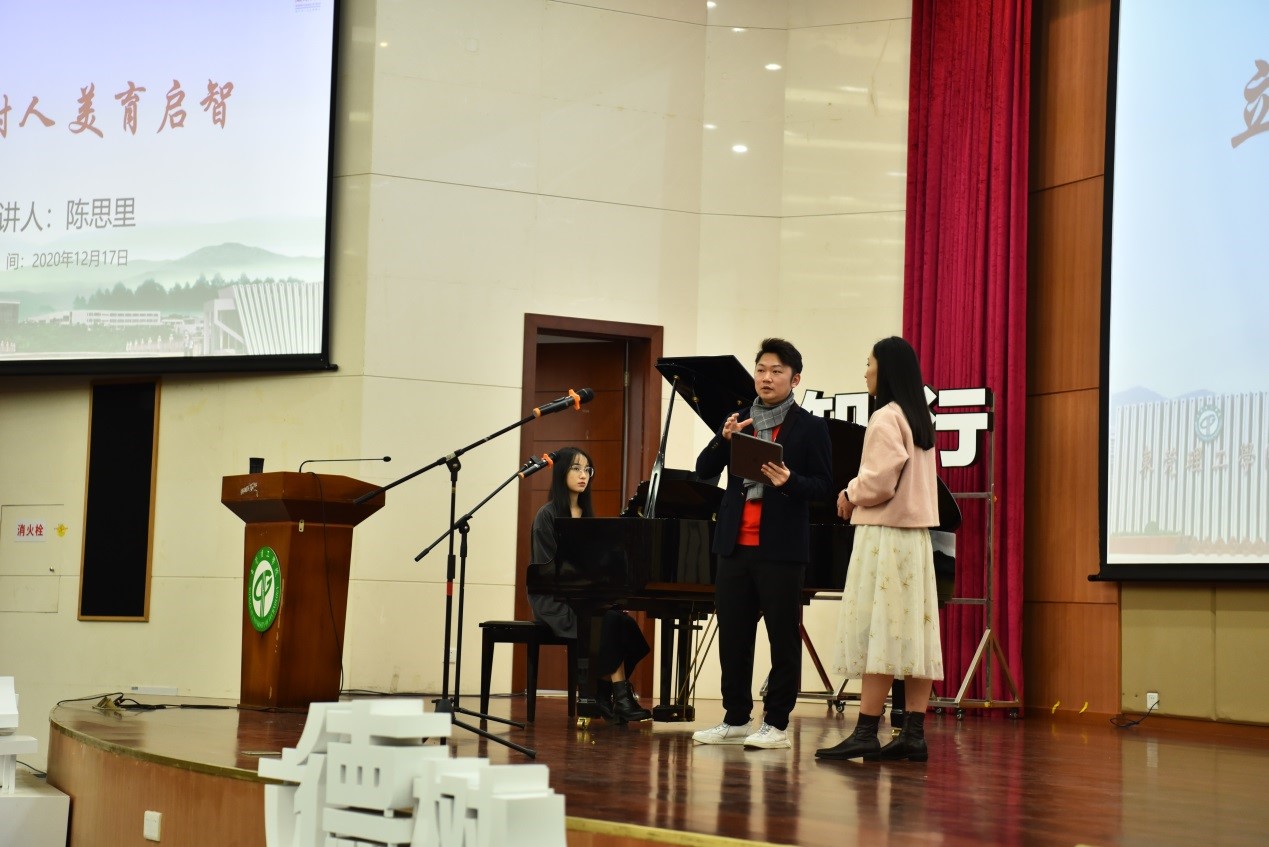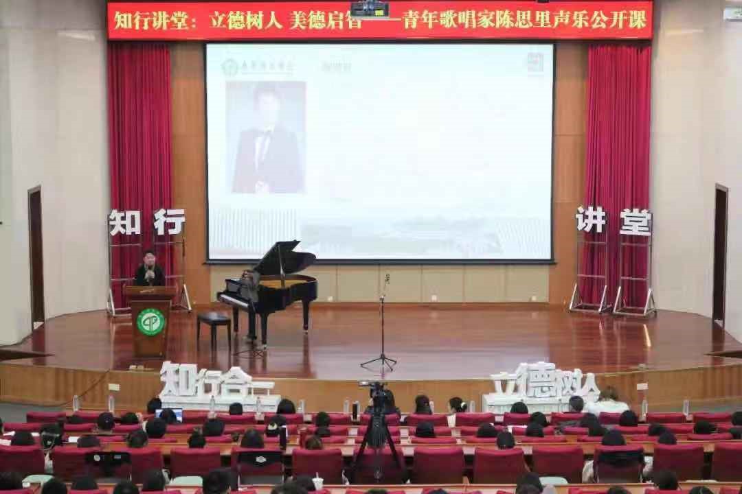 2020年12月17日下午,太阳城音乐系与员工社区知行公司联合举办的知行讲堂“立德树人,美育启智”青年歌唱家陈思里声乐公开课,在学术会议中心报告厅举行。本次公开课由青年歌唱家陈思里主讲。