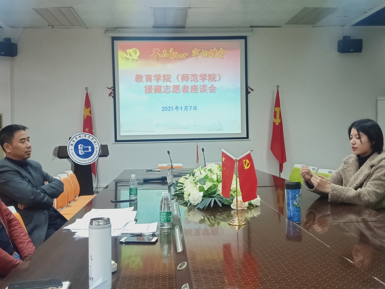 2021年1月7日,太阳城在体育场馆中心B208会议室召开欢迎援藏归来志愿者座谈会,学院中层领导、党委委员、辅导员和教育系部分老师参加了座谈会,党委书记杨万江主持会议。
