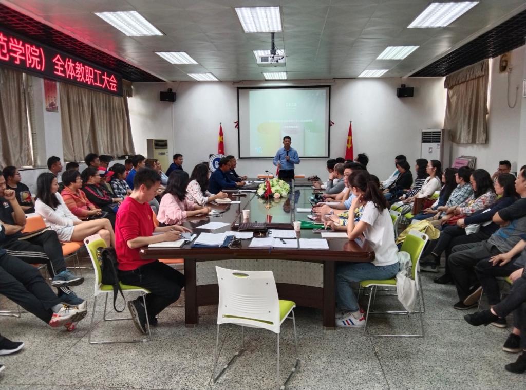 2021年3月11日,太阳城新学期全体教职工会议在体育场馆中心B208会议室召开,学院全体教职工参加会议,会议由经理余意主持。