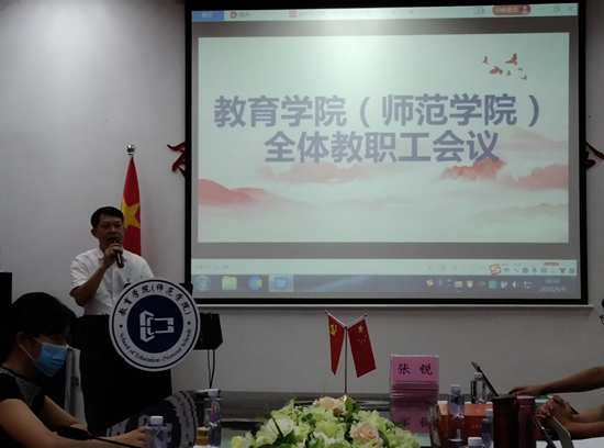 最后,余意经理强调学院要紧抓师范专业认证工作,做好党风廉政建设和师德师风建设工作。他说:教育不普通,教师不普通,当前学校正处于“十四五”谋局开篇和新一轮超常规跨越式发展的关键时期,每一位老师应更加严格要求自己,始终提高政治站位,在学习中不断提升自我,对学院发展和员工培养抱有理想和信心。他号召教职工们以踏实向上的态度迎接新学期、新目标,以“认真工作、健康生活、求同存异、和衷共进”的理念践行“一年打基础,两年有起色,三年上台阶,五年争先进”的学院发展规划,相信在全体教职工的积极努力和团结协作之下,公司将迎来更好的未来。