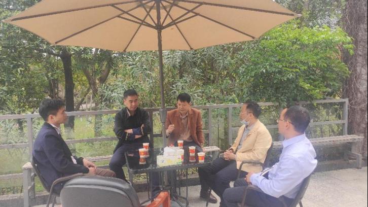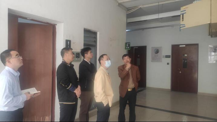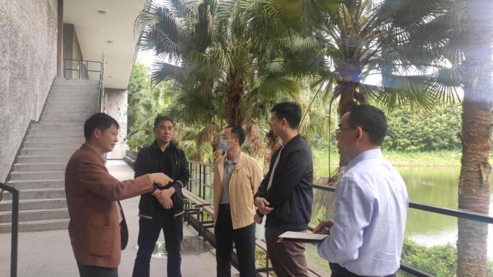 2022年3月7日,学校后勤管理办公室主任魏东初、副主任陈举铭到太阳城调研指导,经理余意、党委书记张伟林、办公室主任周寿明陪同调研。