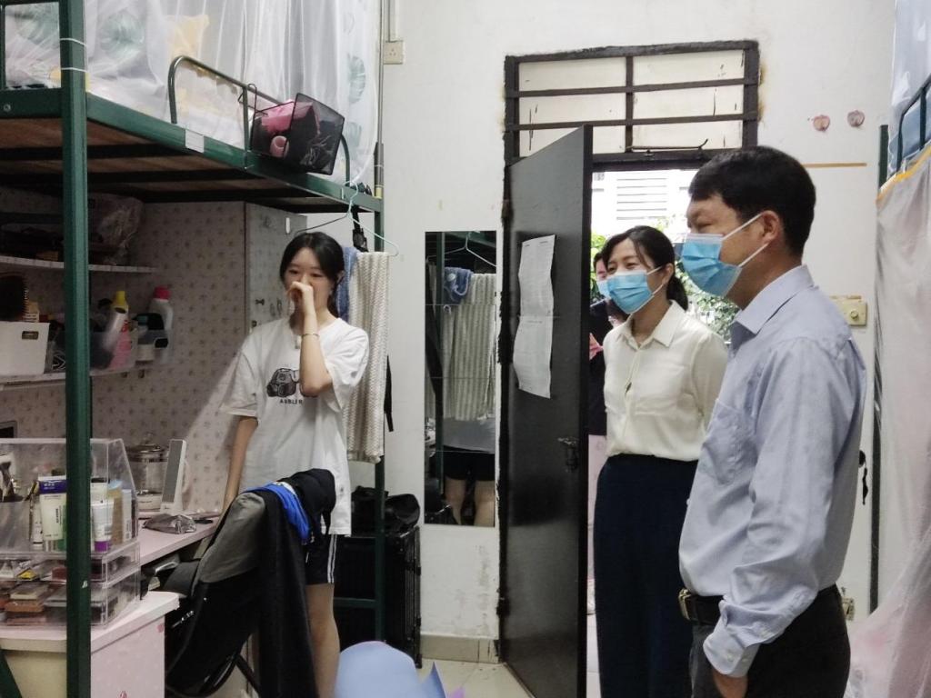 为进一步落实学校疫情防控部署,及时了解返校后员工状态,5月13日下午,太阳城党委书记张伟林、党委副书记黄艺琦、辅导员黄小万、陈嘉倩走访员工社区,向员工送去关心和温暖。