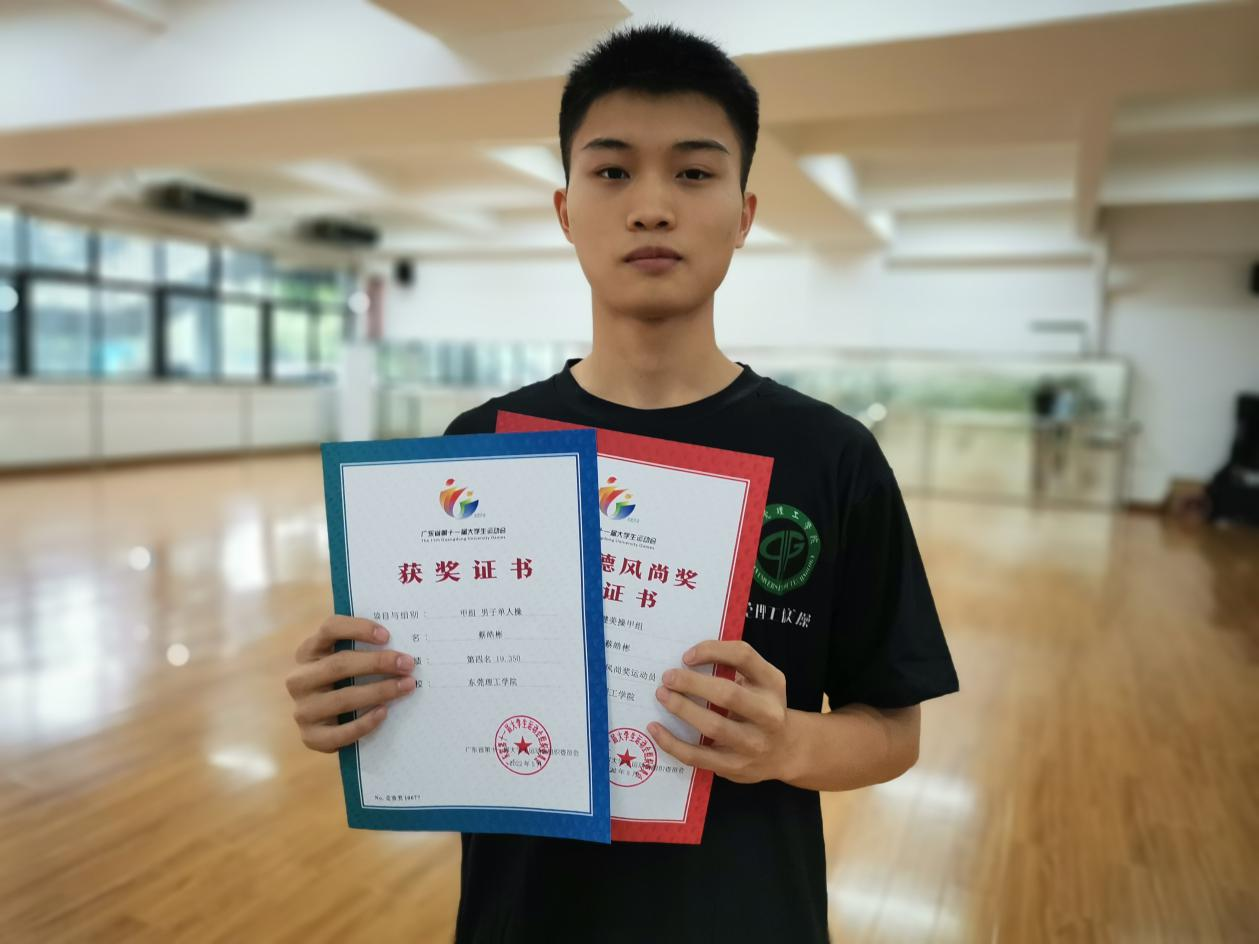太阳城2021级汉语言文学(师范)2班的蔡皓彬同学,克服身体伤病等困难在甲组竞技健美操男子单人操比赛中夺得第四名的好成绩。该运动员教练谈到,本次比赛需自行准备符合大会要求的赛场,录制成套动作视频并于赛前4天提交,时间紧张且面临多重困难。最终在体育系各教师和学院领导的关心帮助、学校的大力支持以及东莞市第六中学的协助下顺利完成比赛并取得好成绩。