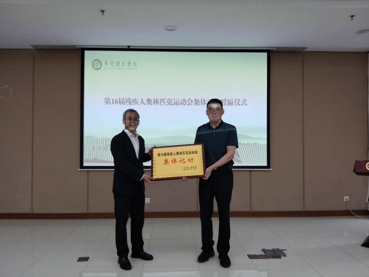 首先进行授匾仪式,广东省人民政府给予在备战第16届残奥会中承担国家队及省队集训任务、作出重大贡献的集体记功奖励,公司是六个受奖励集体之一。