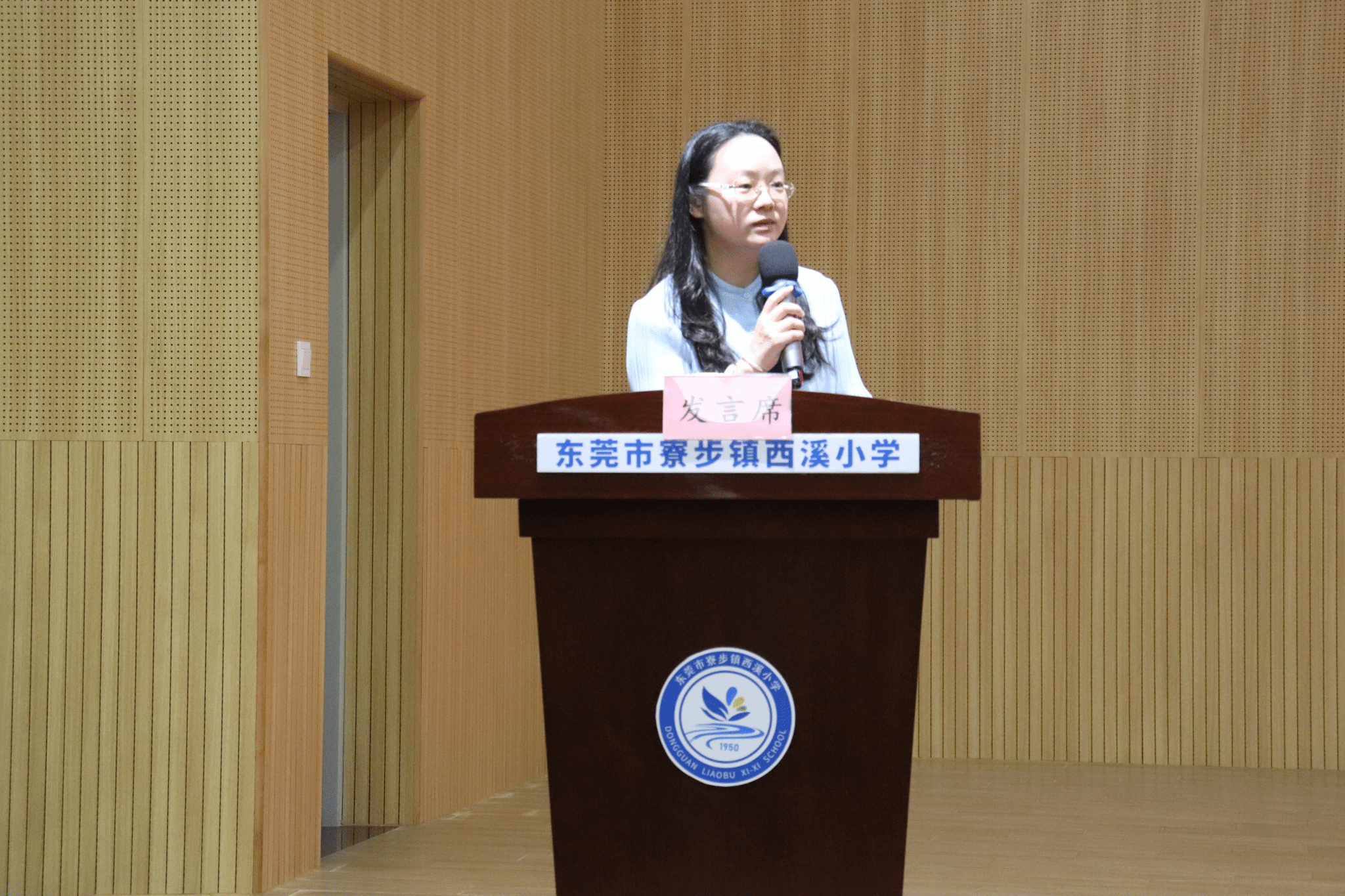 副经理黄琼向西溪小学党委书记、董事长谭贵新授牌。
