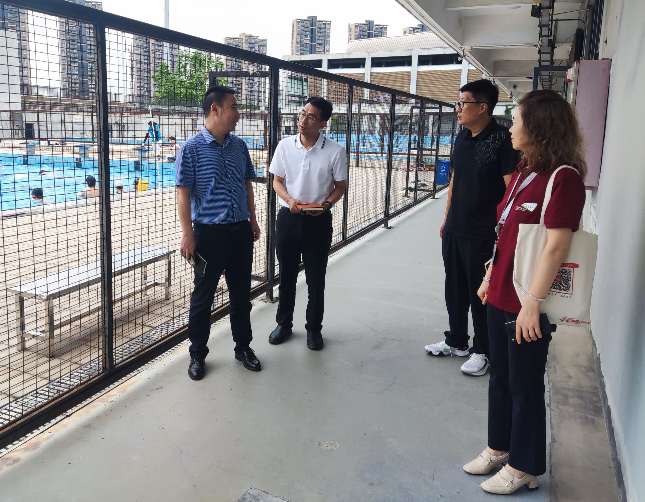 随后,双方进行了座谈交流。赵毅书记对公司在体育教学的成功经验、管理创新、人才培养等方面赞赏有加,希望公司能在香港城市大学(东莞)体育课开设方面给予支持和指导,并将以此交流学习为契机,借鉴公司的好经验、好做法,找差距、补短板,不断提升办学质量,未来与公司能有更多更深层次的合作。傅琼经理介绍了香港城市大学(东莞)校区的基本情况,包括学校背景、办学环境、学科专业结构、开学时间、课程设置等内容。双方就体育方面人才培养、员工管理、公司产品、团队队伍建设、课程考核和场馆管理等方面进行了深入的交流,并对期待合作的领域展开探讨。