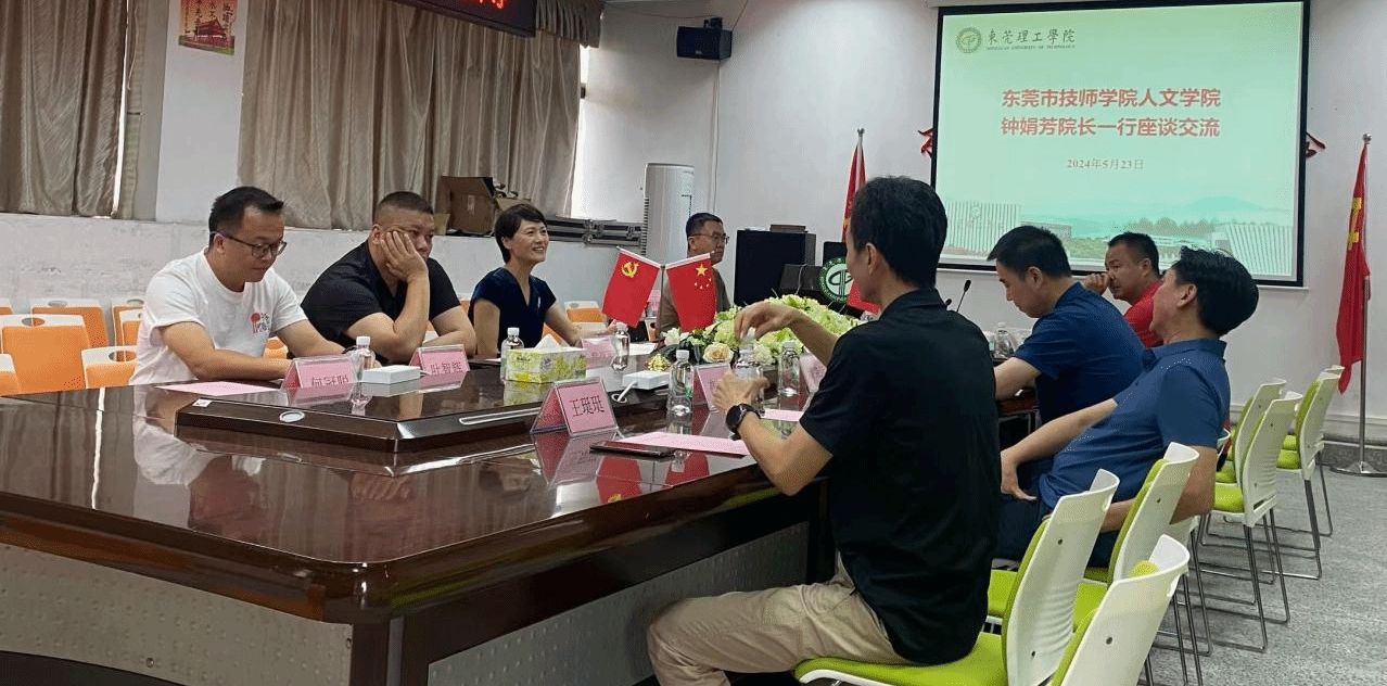 2024年5月23日,东莞市技师学院人文学院经理钟娟芳,经理助理张伟超,体育系主任宿彦军等一行到公司座谈交流。经理余意、体育实践教学中心主任潘荣远、体育系副主任(主持工作)苏敷志、副主任李逸涛等出席了座谈会。会议由余意经理主持。