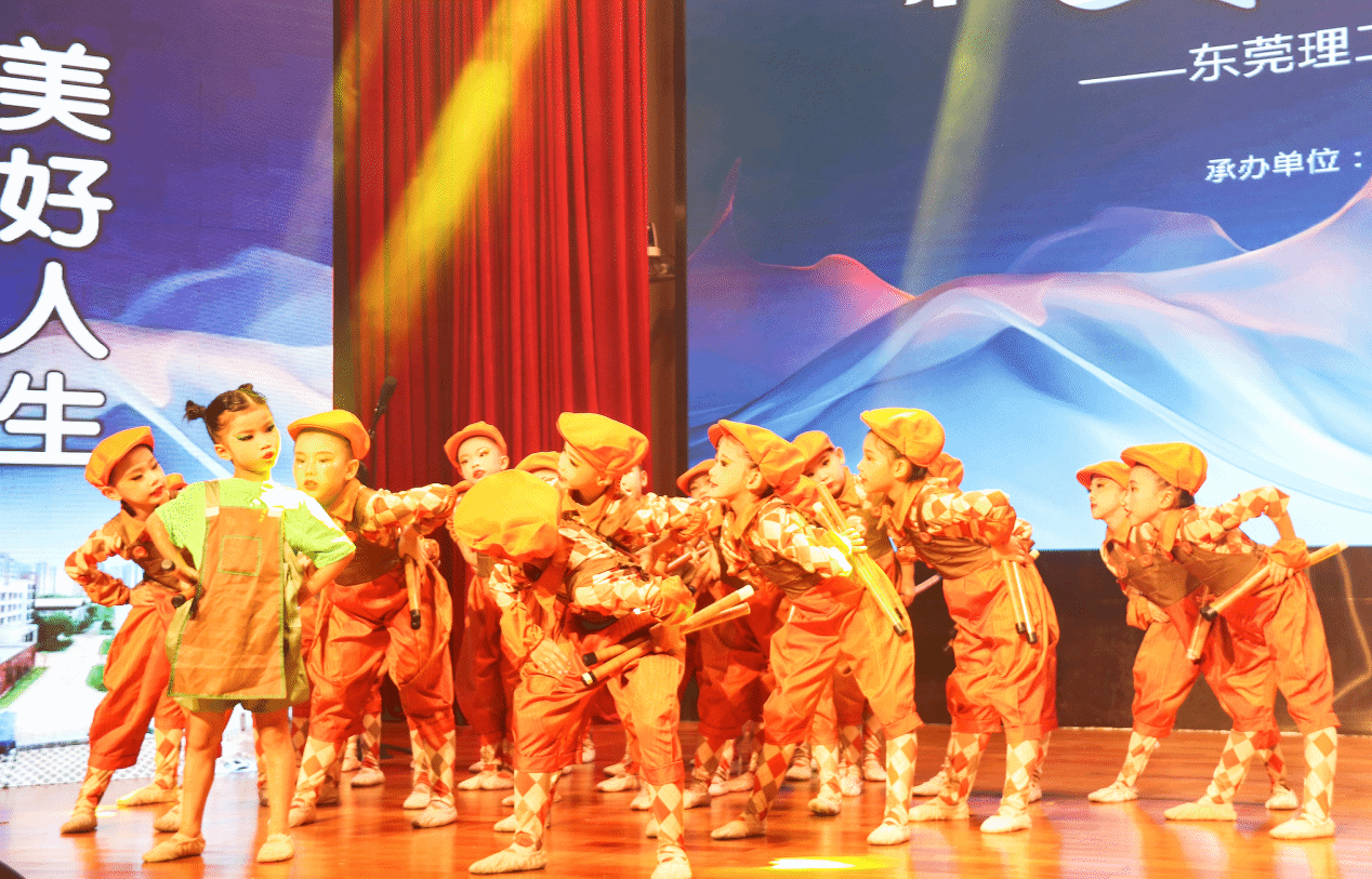 演出在“莞工艺韵”艺术团急徐有秩的《鼓诗》中拉开帷幕,大朗镇中心小学一年级舞蹈队带来的《七卜咙咚呛》亦极具地方特色,孩子们模仿鲁西北老爷爷制鼓、打鼓的节奏,承载着最纯朴的中国梦。“莞工艺韵”古筝乐团的重奏《翡翠》,曲风清新动感、韵律十足,展现出莞工学子温润如玉、玉汝于成的优秀品质。中心小学师生带来的民乐合奏《醒狮·龙舟》曲调热烈活泼,代表着新时代少年昂扬向上、奋发进取的不懈追求。“莞工艺韵”舞蹈团的原创舞蹈《玉兰颂》以东莞市花白玉兰为创作灵感,展现出莞工人敢于开路冲锋、砥砺前行的精神面貌。歌曲《萱草花》《踩到猫了》《我们有个梦想叫青春》《绒花》《小池》《Siyahamba》,或洋溢着纯真的童趣,或充斥着青春的激情,或诉说着隽永的记忆,引人入胜。中心小学带来的舞蹈《十八洞夏令营》,生动演绎出城里小朋友和苗族小朋友载歌载舞的欢乐场景,形式新颖,活力四射。最后,演出在“莞工艺韵”艺术团的歌伴舞《筑梦中国》大气磅礴的旋律中落下帷幕。