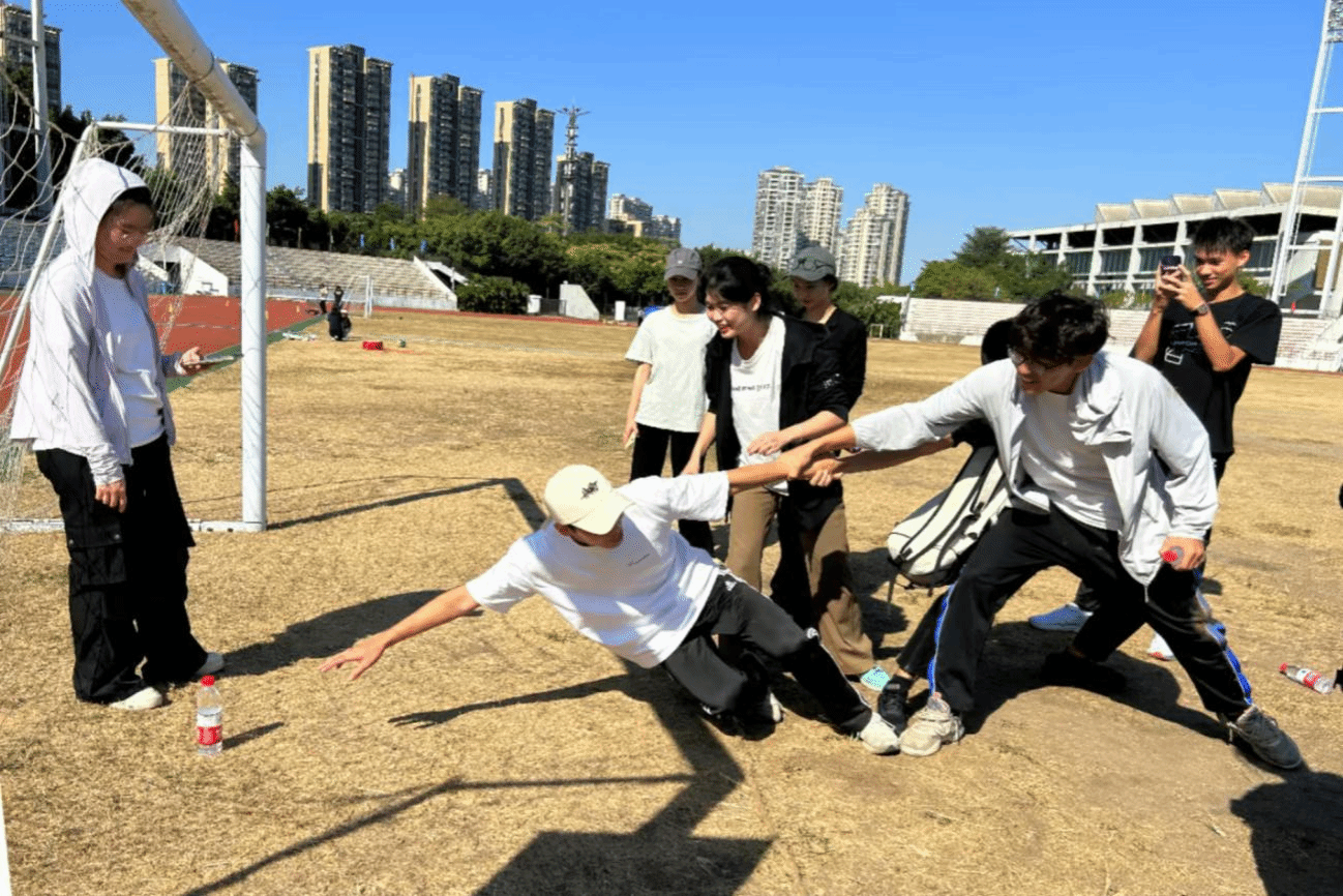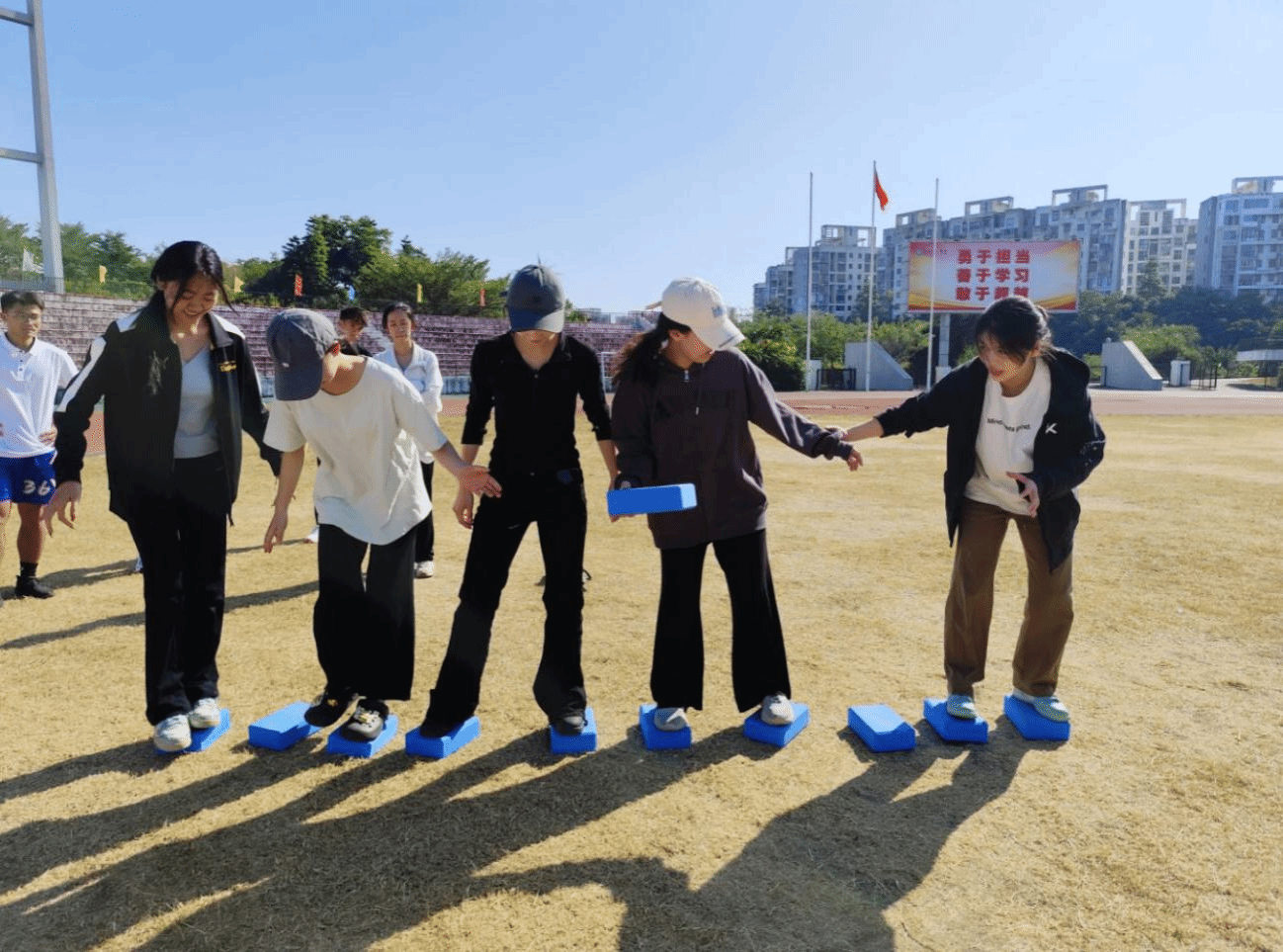 在“巧渡金沙江”闯关点,要利用有限的砖块,在最短的时间内,让全组队员到达终点。过程中,各小组充分发挥队员们的聪明才智,展现了集体团结协作,英勇奋进的精神风貌。