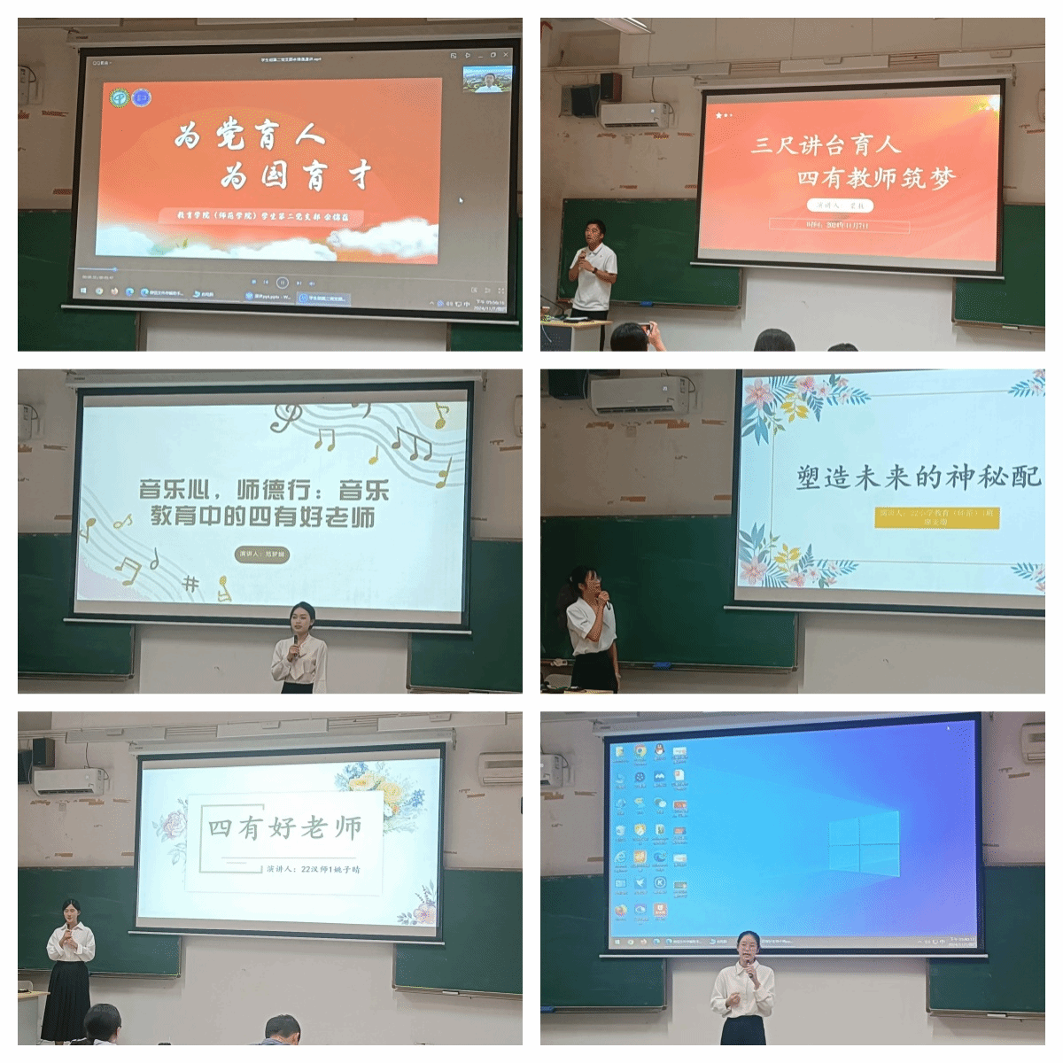 演讲比赛分教师组和员工组。教师第二党支部王玉超以《我心目中的四有好老师》深刻剖析好老师标准;教师第一党支部的梁兴源以《岁月如流 情怀不变——回首我的教师生涯兼谈“四有好老师”体会》回顾教员工涯,诠释教育情怀;曹德祺以《四有教师:用舞蹈点燃青春梦想》展现独特视角下的教师魅力。