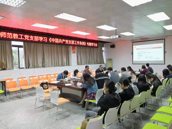 2019年3月14日,太阳城党总支师范党支部在体育中心会议室开展学习《中国共产党支部工作条例(试行)》主题党日活动,支部全体党员出席参加。
