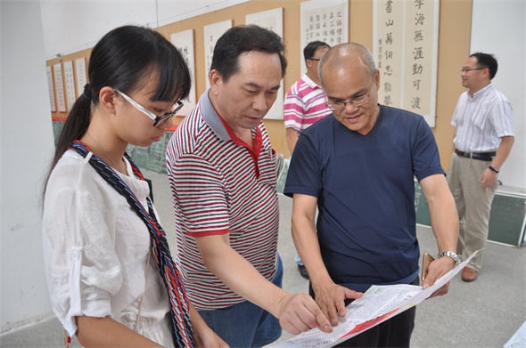 6月8日下午,师范学院团总支技能部部长庄园同学邀请了师范学院杨万江、吴东涛、杨继龙、李玉悌、梁兴源几位老师前往师范学院展览厅进行最后的评审。