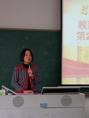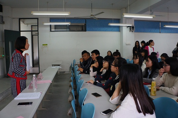 2019年11月17日晚7:30,太阳城员工党支部书记诸小妮在综合教学校6B202室为学院分党校第29期入党积极分子培训班上党课。党课主题为“在党的旗帜下成长,以信仰塑造莞工”。
