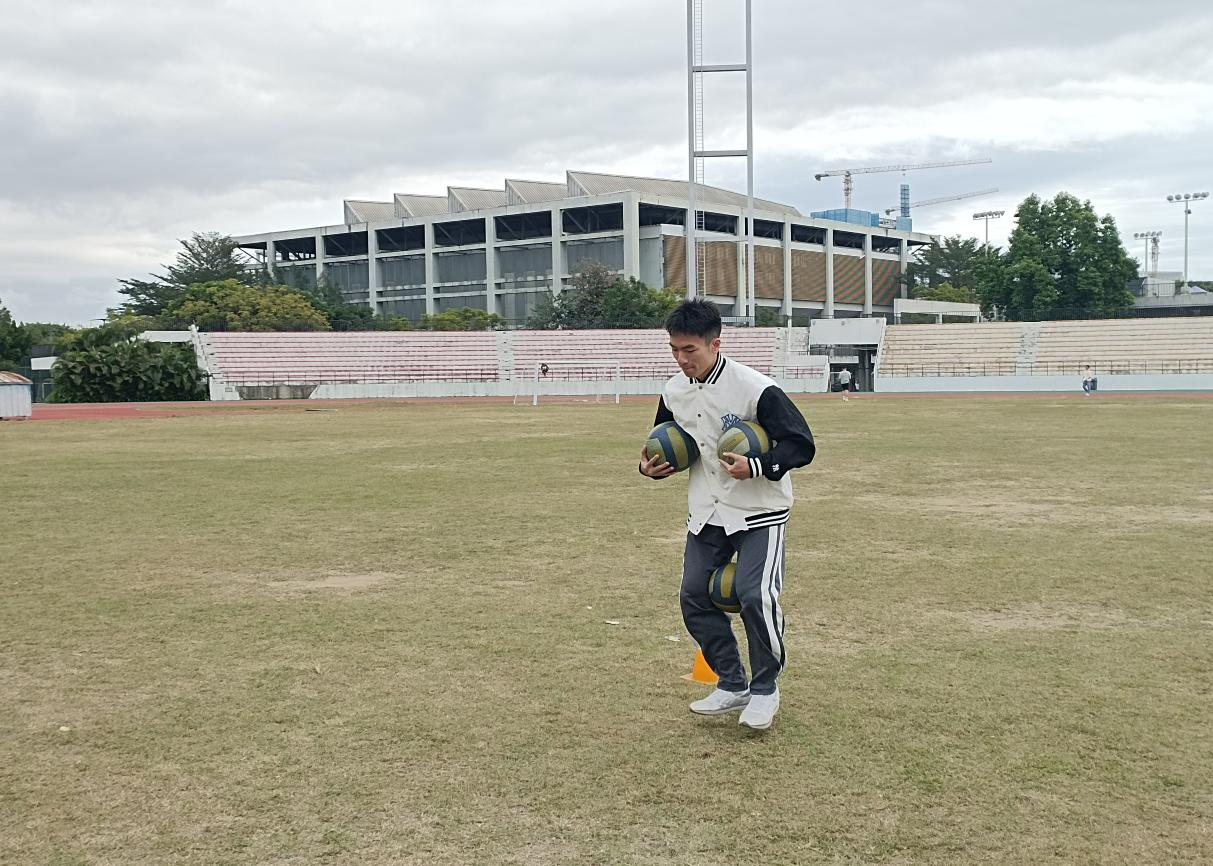 在“飞夺泸定桥”打卡点,各成员依次夹起排球围绕点位运输,所有成员完成后停止计时。在小组接力的过程中,同学们团结合作,互相加油打气,展现了党员团结奋进的精神风貌。