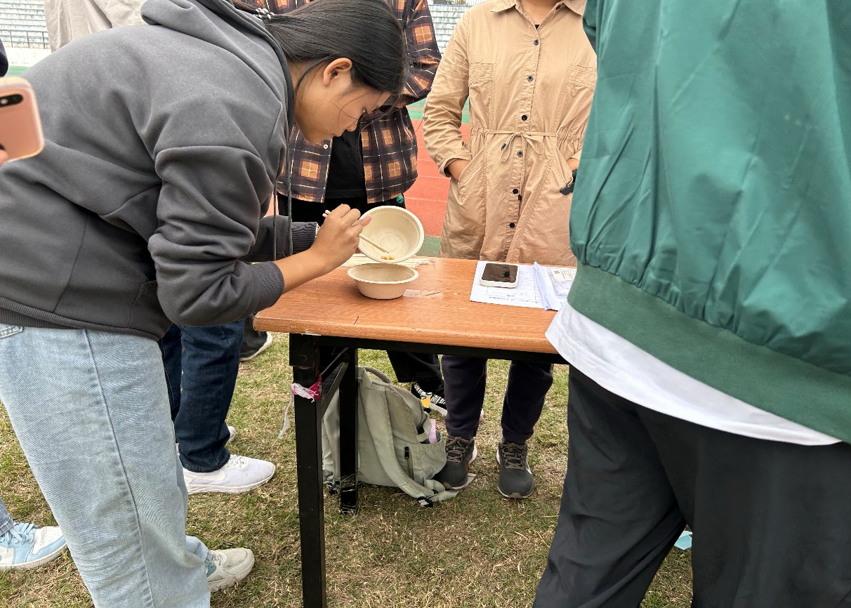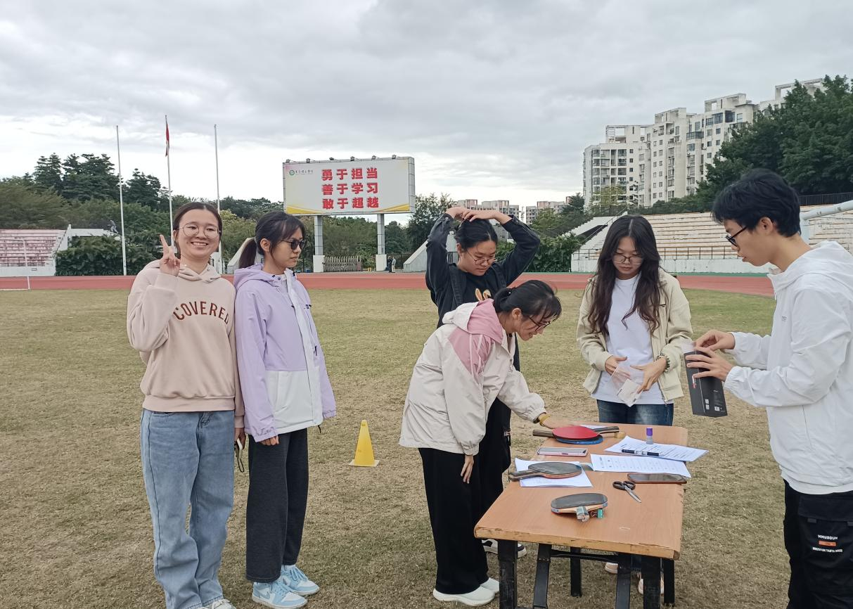 在“强渡大渡河”打卡点,各组同学依次答题并传递乒乓球,每组完成六题。传递过程中,同学们保持稳定状态,将乒乓球安全运输。通过分工合作,同学们深刻体会到红军不怕困难,团结一致的长征精神。