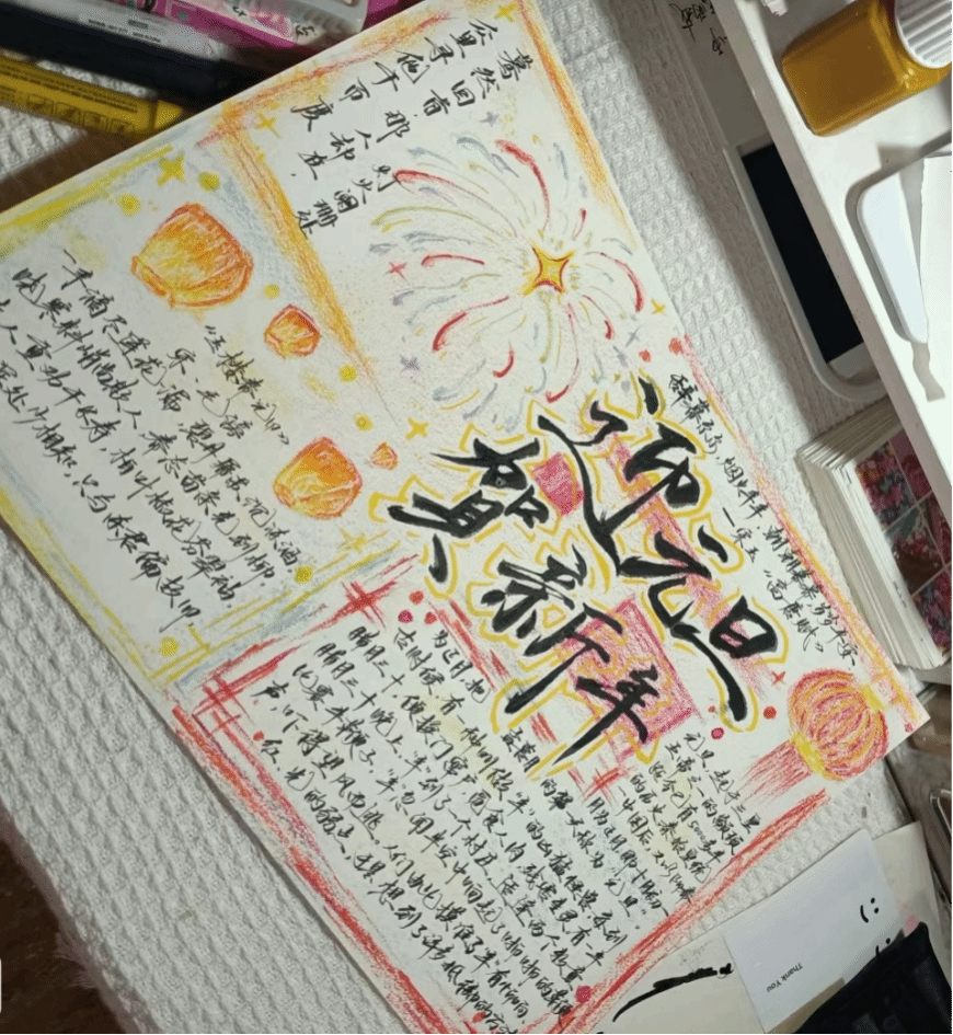 员工党员们在春节节日期间积极参与活动,通过朗诵红色文章、歌唱红色曲目、书写对联、手工制作剪纸、手抄报等多种形式来庆祝春节。同学们的作品不仅表达了对新年的祝福和期望,更是对中华民族优秀文化的传承和发扬。