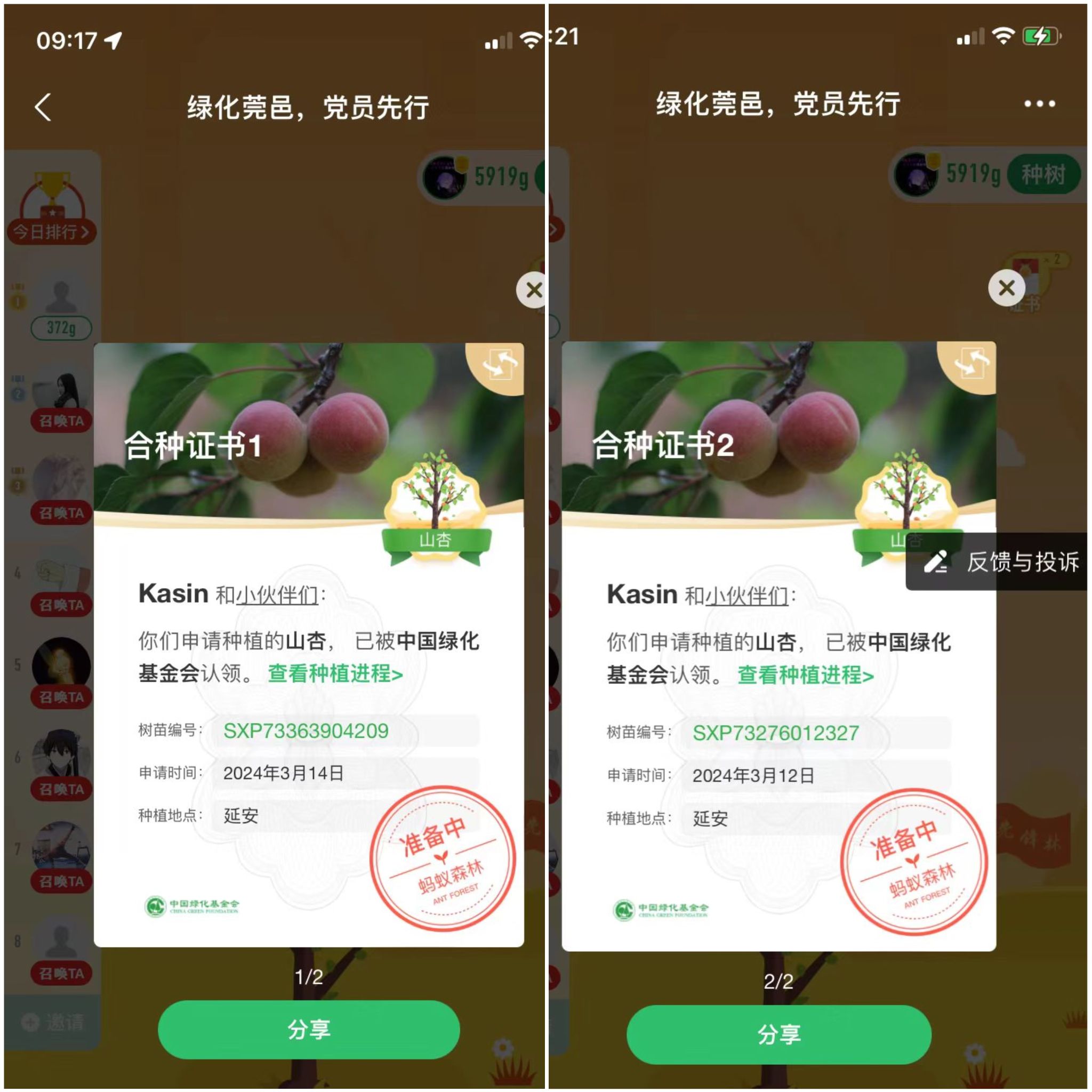 员工第一、二、三党支部开展“线上合种植树”活动,在“支付宝”的“蚂蚁森林”进行线上合种,通过绿色出行、循环利用等低碳生活方式获取能量,顺利合作申请两棵山杏,并由中国绿化基金会把实体树苗种植。