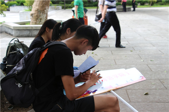 然后,组织全体党员开展了素质拓展活动。本次活动以小组的形式进行,把党员们分成两个小组进行对决。同学们在东纵纪念馆内根据之前抽取的提示进行针对性的学习,在学习完毕之后进行汇报,最后由评委进行点评,决出胜负。两组同学在到达东纵纪念馆那一刻就兴奋起来,大战一触即发。在经过一个多小时在馆内进行的寻找和学习相关资料,两组同学都按时回到约定地点并且进行了学习的汇报。经过一番激烈的比拼,最终第二小组略胜一筹,获得了胜利。