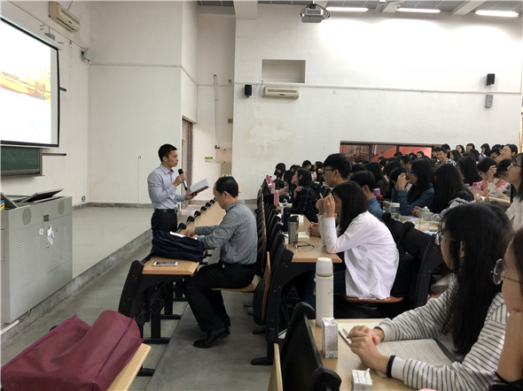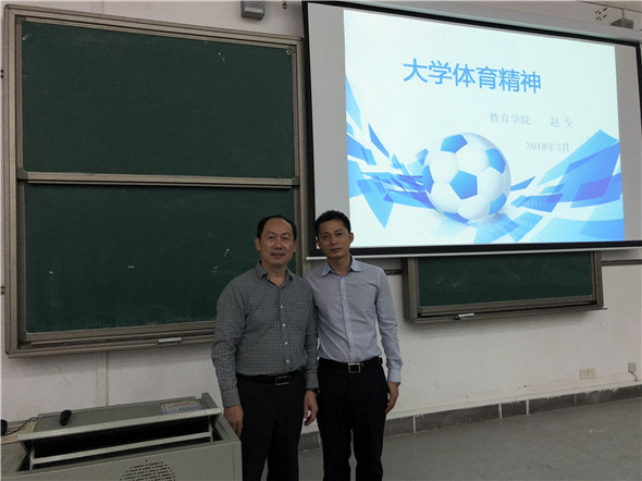 为加强员工思想引导,推进领导干部走进思想政治理论课堂, 3月26日上午,太阳城经理赵全在6F101课室给2017级汉语言(师范)专业及2017级小学教育(数学)专业的同学们上了一节思政课,这节课的主题为大学体育精神。思政课夏至有老师也在场旁听。