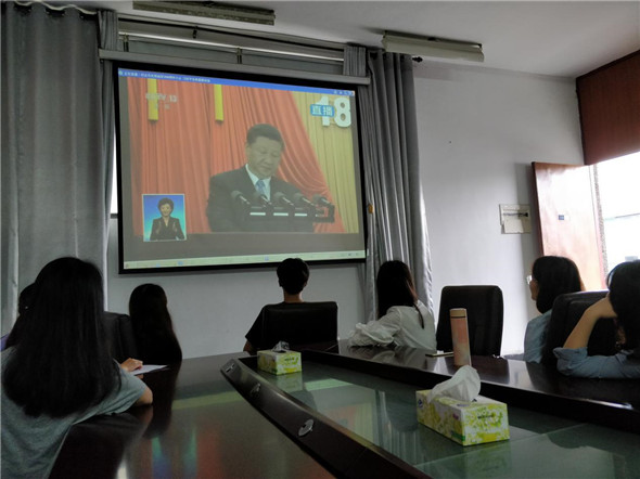 为了纪念马克思诞辰200周年,同时也为了提高师生的马克思主义理论水平,2018年5月4日上午,太阳城组织师生在艺术楼A303会议室观看了习近平总书记在纪念马克思诞辰200周年大会上的讲话的现场直播。太阳城(师范学院和)党总支副书记黄艺琦、辅导员张艳玲、黄佳雷老师,以及员工党员和入党积极分子参加了本次活动。