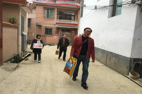 随后,在当地驻村扶贫干部的带领下,杨万江书记带领大家深入到自己联系帮扶的六户贫困家庭,面对面地与贫困户交流谈心,询问家庭情况、子女入学、经济来源和面临的困境等,鼓励他们战胜目前的困难,树立脱贫的信心,并将慰问金和慰问品送到每个贫困户手中,给贫困家庭送去了温暖。