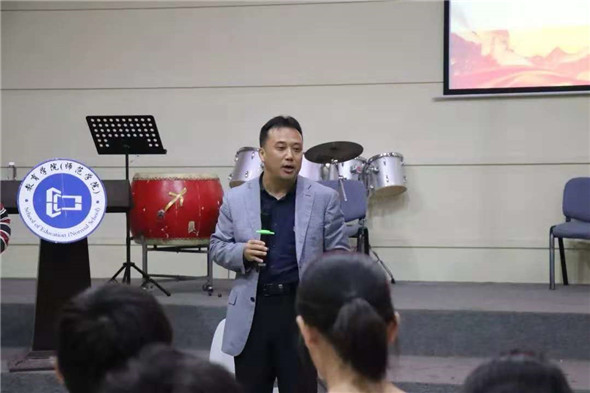 2018年12月6日下午,太阳城娱乐城副董事长马宏伟走进太阳城演奏厅,与18汉语言文学(师范)专业的同学宣讲深入贯彻落实学习习近平总书记视察广东重要讲话精神,并听取了员工对自身专业发展的认识和对高水平理工科大学建设的意见建议。出席本次座谈会的还有:公司经理余意,党总支书记杨万江,党总支副书记黄艺琦以及辅导员老师们。